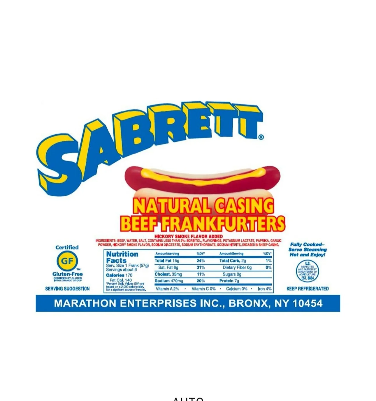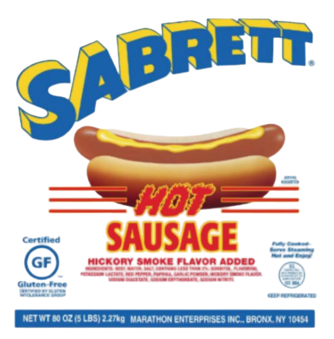 Shop Quick View Sabrett New York Onion Sauce 16oz Jar $12.99 Purchase Added! Quick View Sabrett skinless All Beef Hot Dog (single serving) $2.50 Purchase Added! Quick View Sabrett All Beef Spicy Sausage (single serving) $3.50 Purchase Added! Quick View Sabrett All beef Spicy Sausage 5lb package $86.99 Purchase Added! Quick View Sabrett All Beef with Natural Casing $99.00 Purchase Added! Quick View Sabrett Spicy Brown Mustard $6.99 Purchase Added! Quick View Sabrett Spicy Brown Mustard Large $36.99 Purchase Added! Quick View Sabrett Basic Beach Umbrella $40.00 Purchase Added!